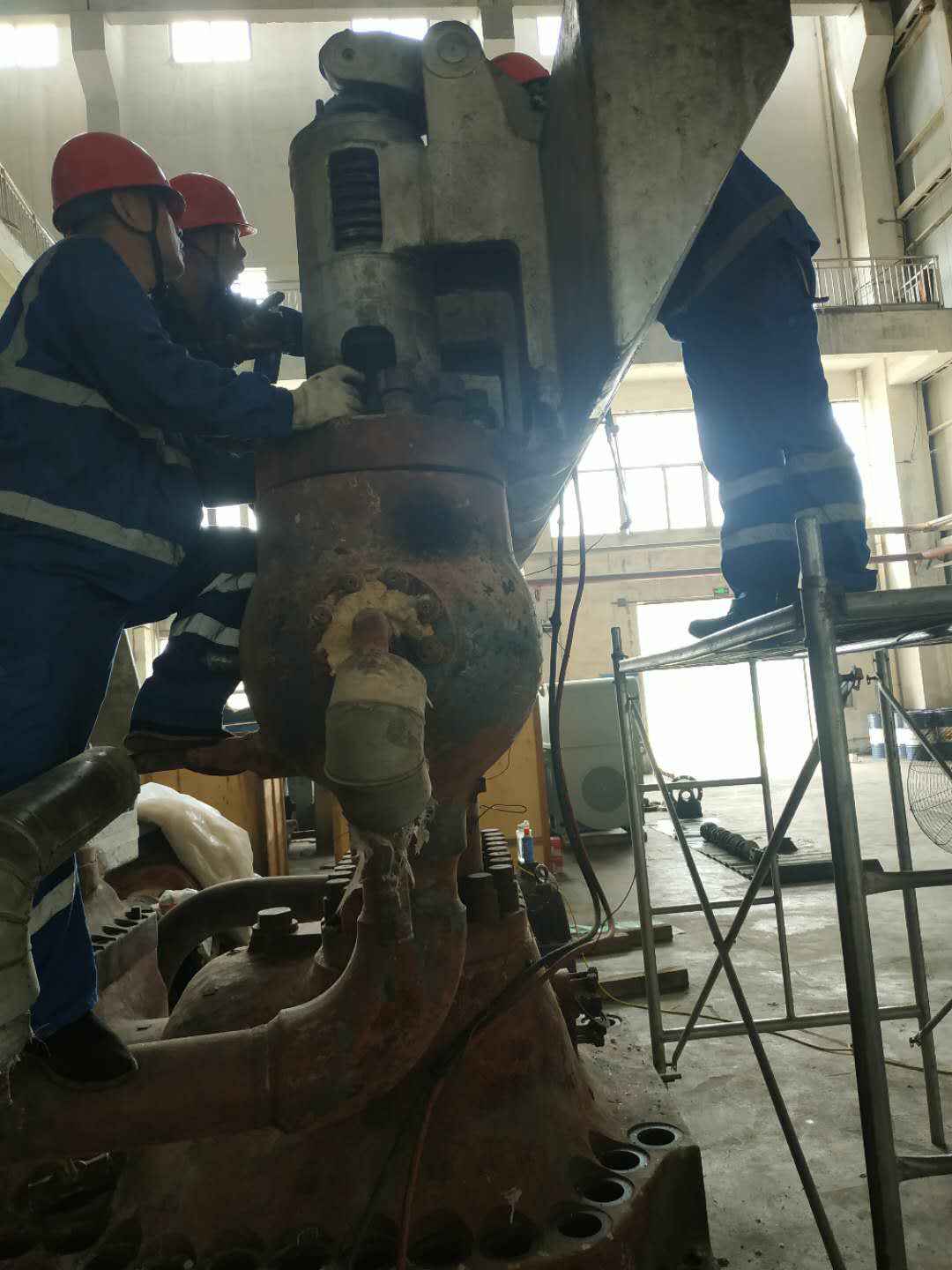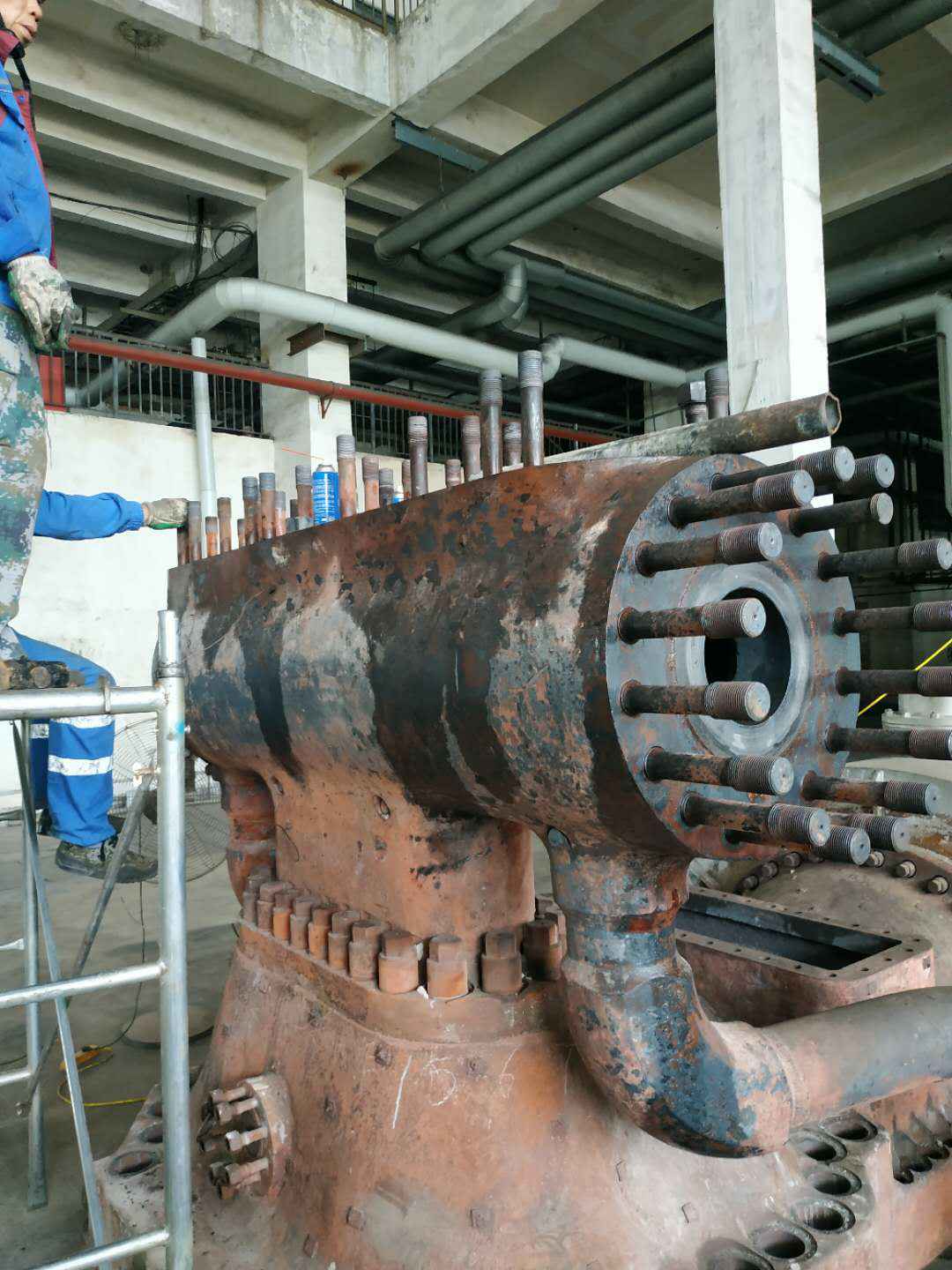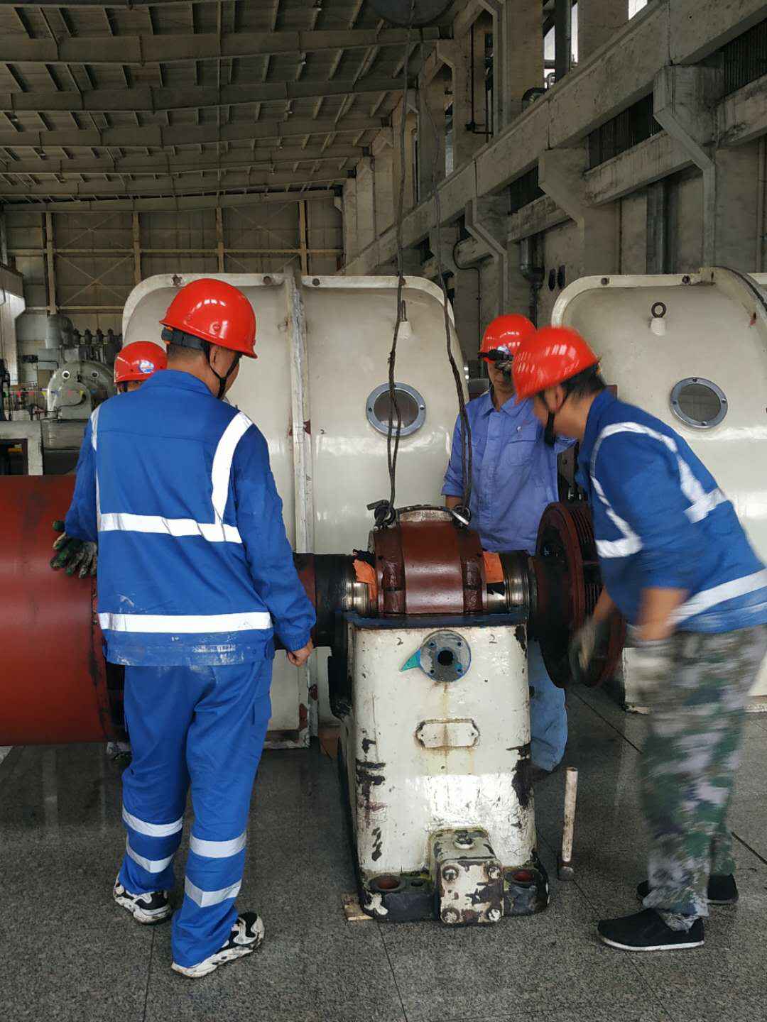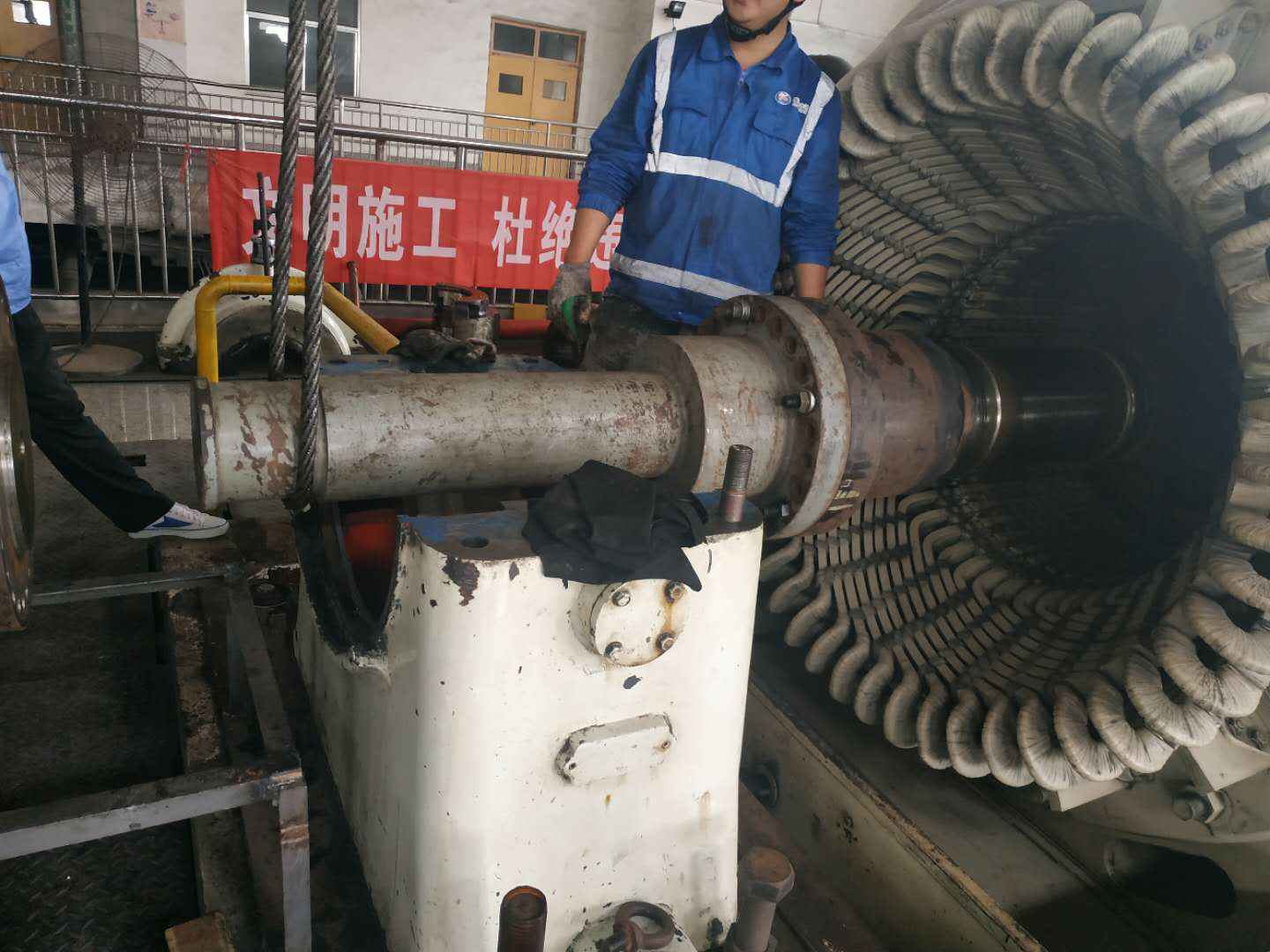 由九州官方网站-九州(中国)承建的山东海能化学有限责任公司机组B15MW背压式汽轮机组(原 C25抽汽凝汽式机组)大修工程现已完成凝结水泵、油站检修工作,发电机前后轴承座基础垫铁研磨工作,目前蒸汽室螺栓的拆卸工作及发电机定子与转子的清理工作陆续启动,下气缸吊隔板工作也在稳步进行中。